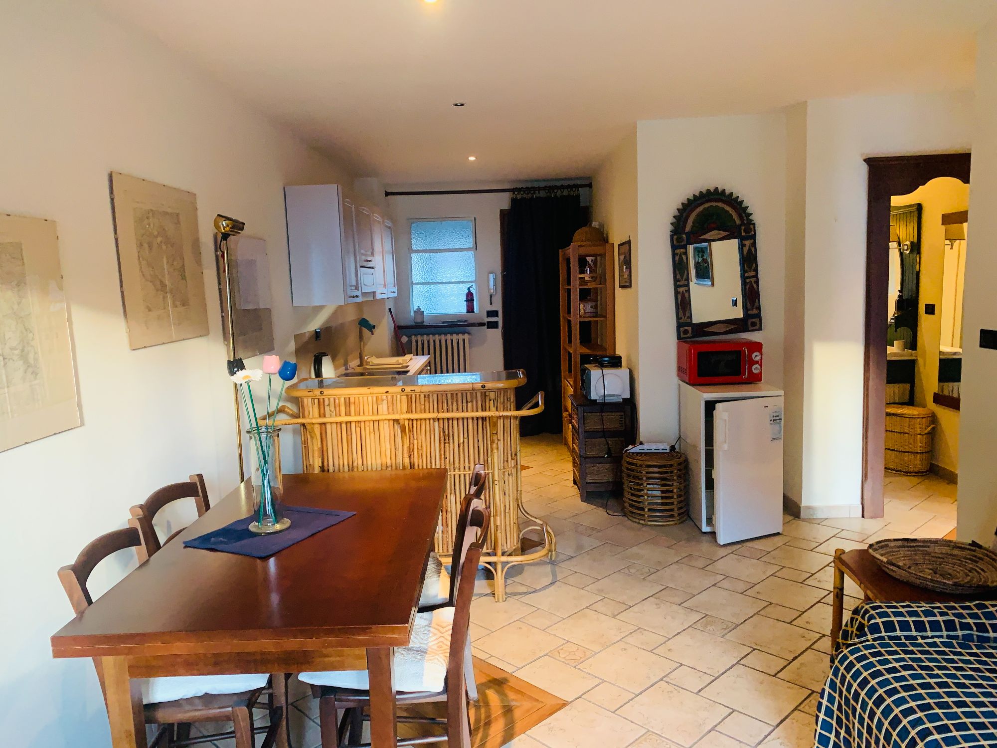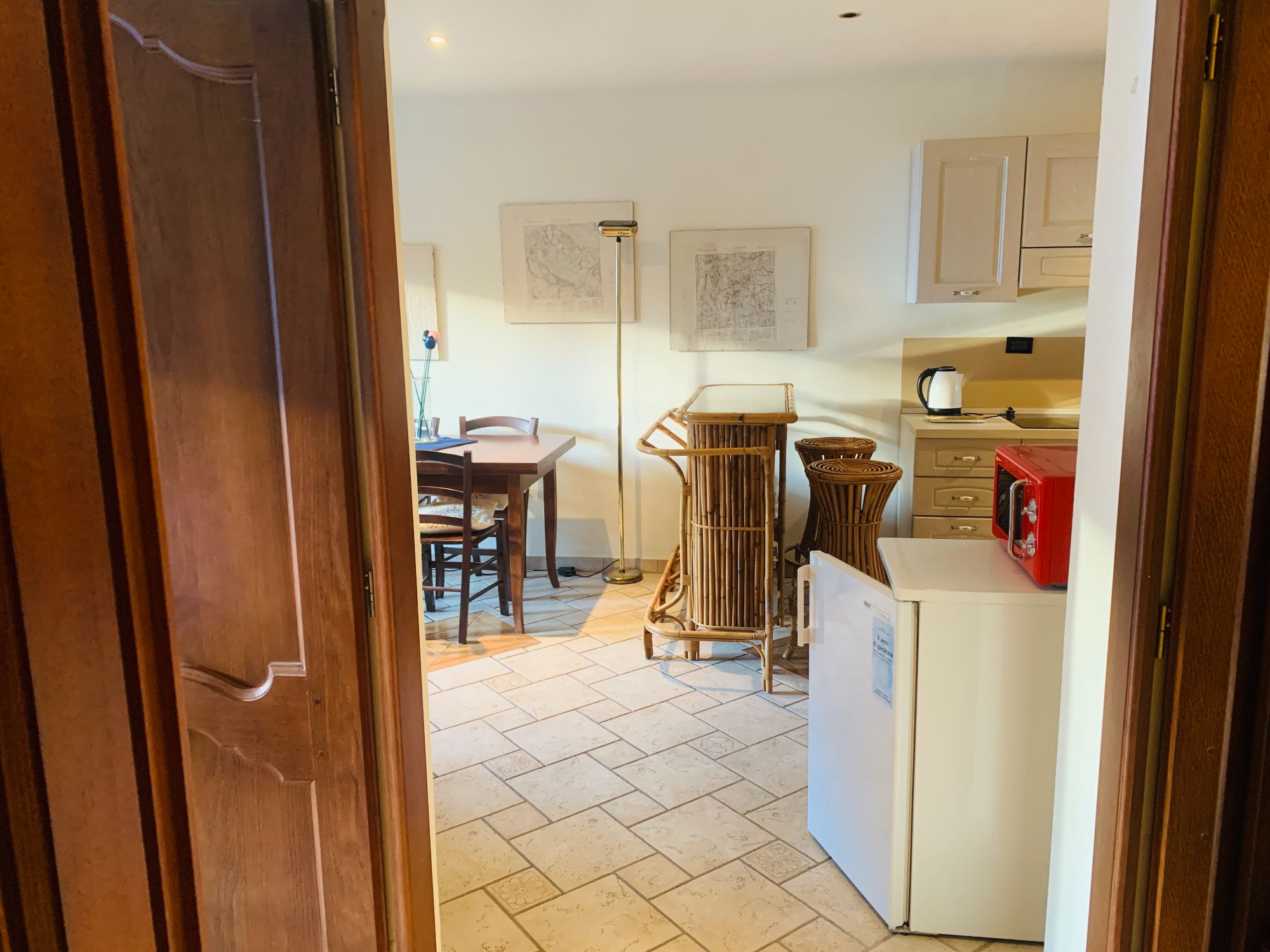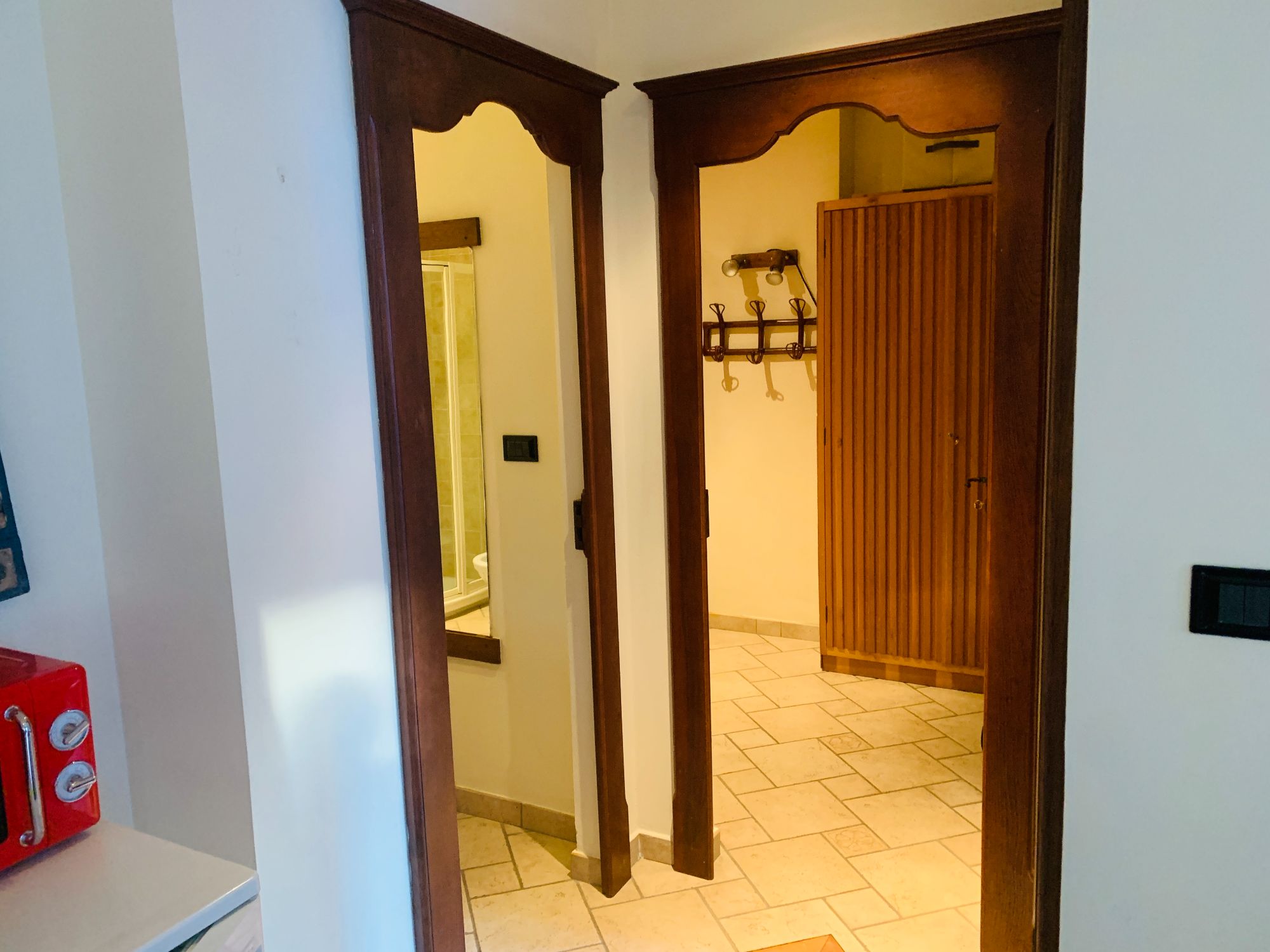 ingresso in una zona disimpegno soggiorno con angolo cottura, in cui è presente il secondo ingresso camera matrimoniale bagno