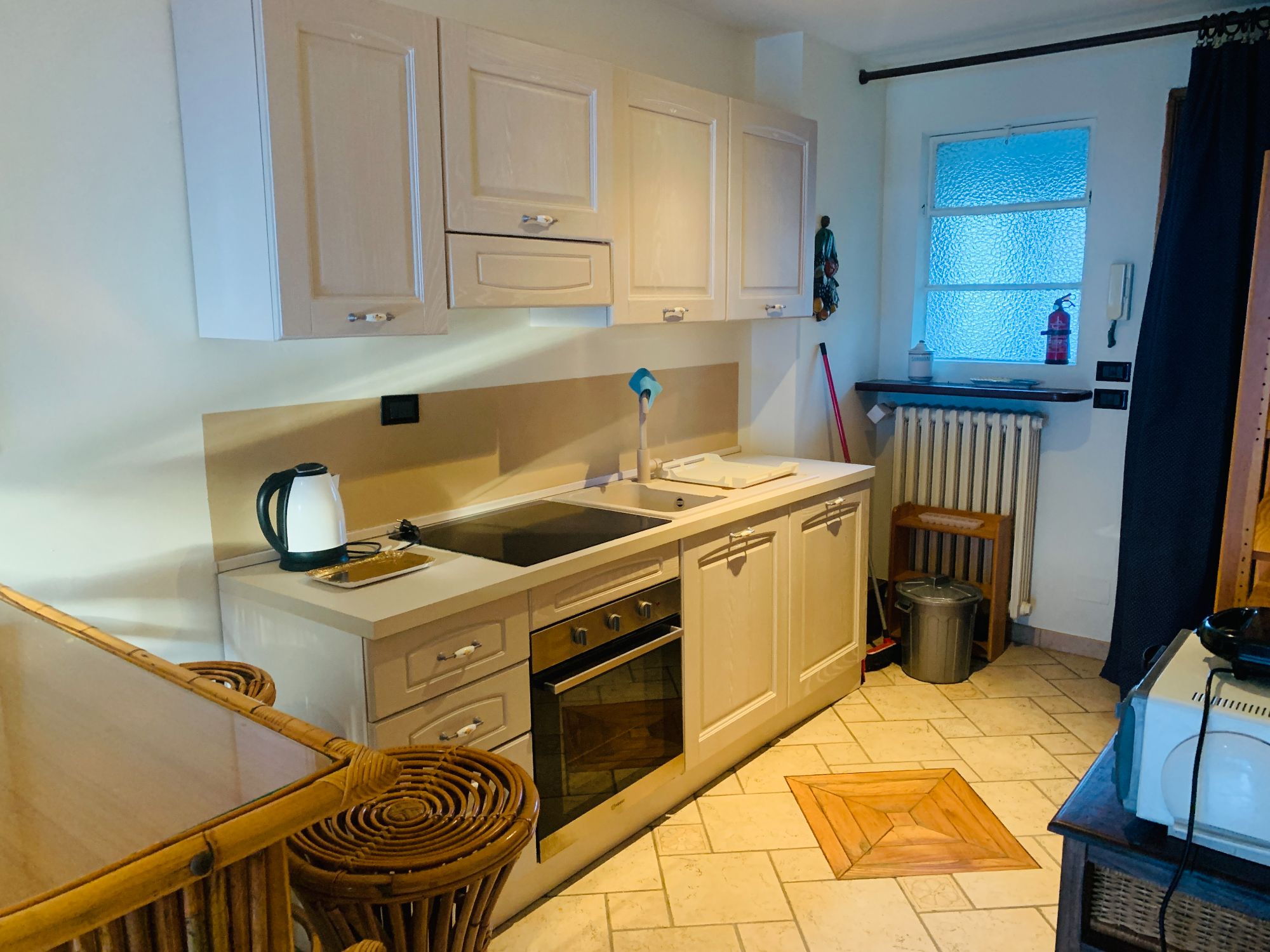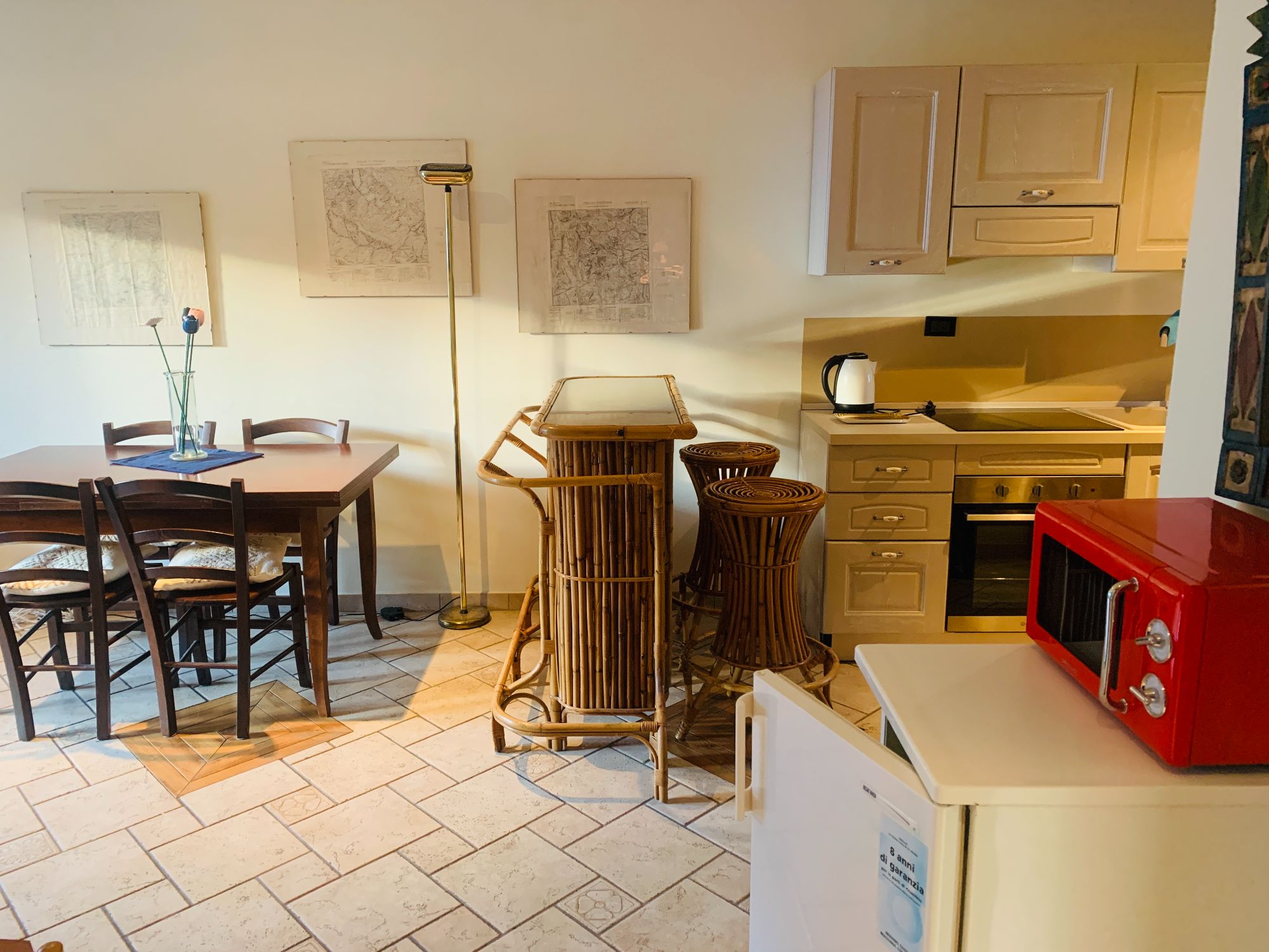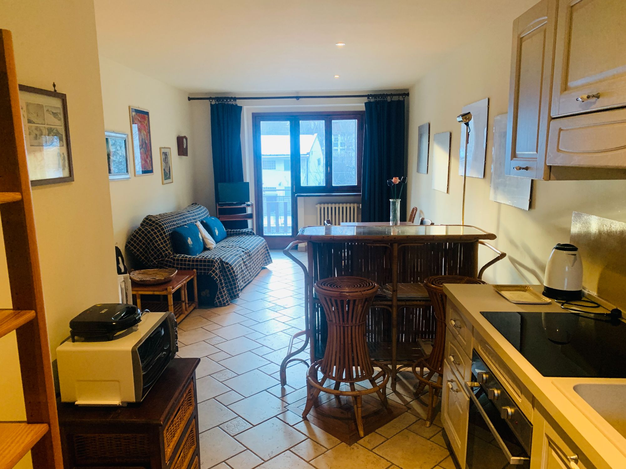 ingresso in una zona disimpegno soggiorno con angolo cottura, in cui è presente il secondo ingresso camera matrimoniale bagno