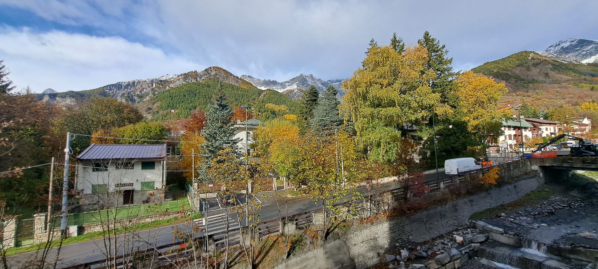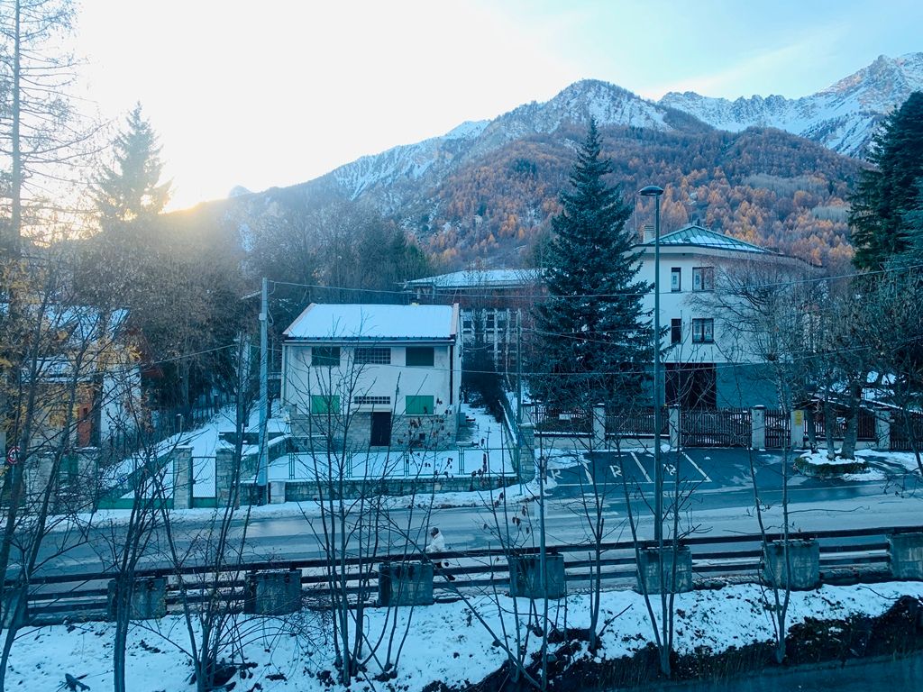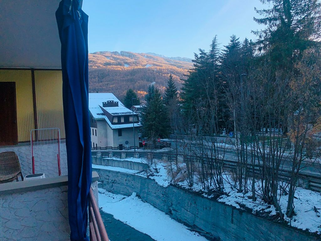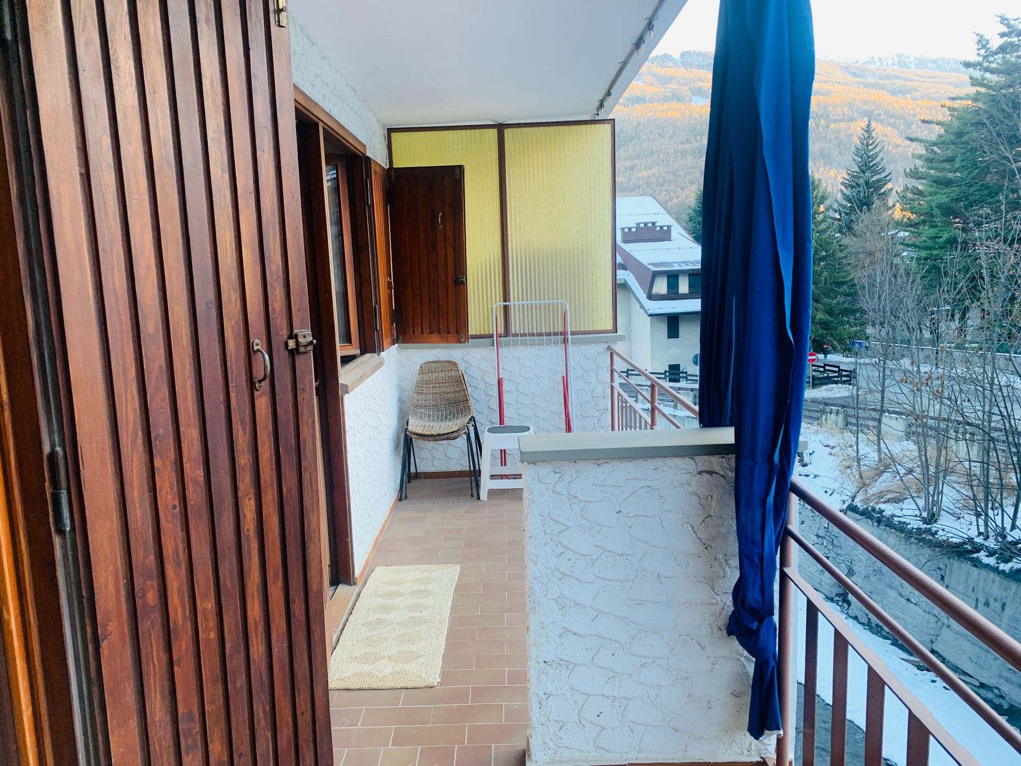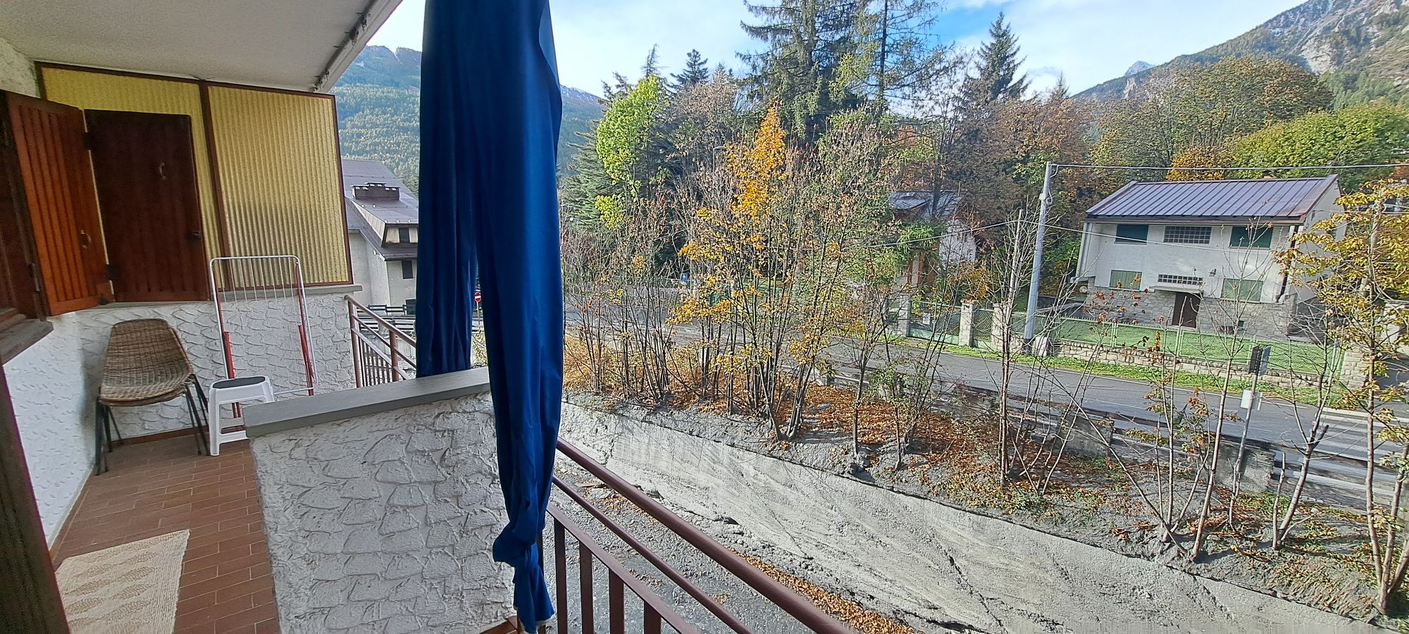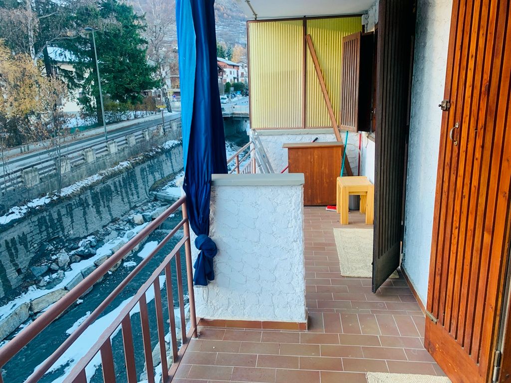 Balcone nel soggiorno e nella camera da letto con affaccio lato fiume e vista montagne un'area di esposizione con orientamento Sud