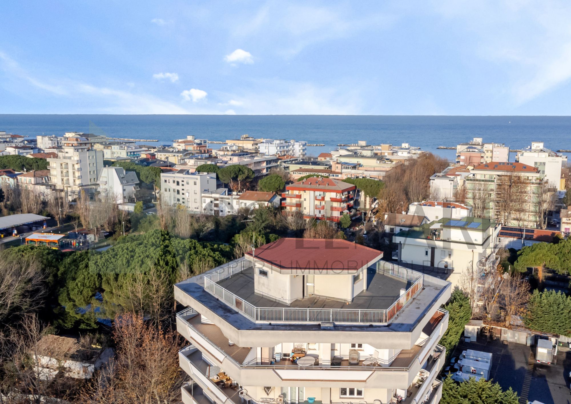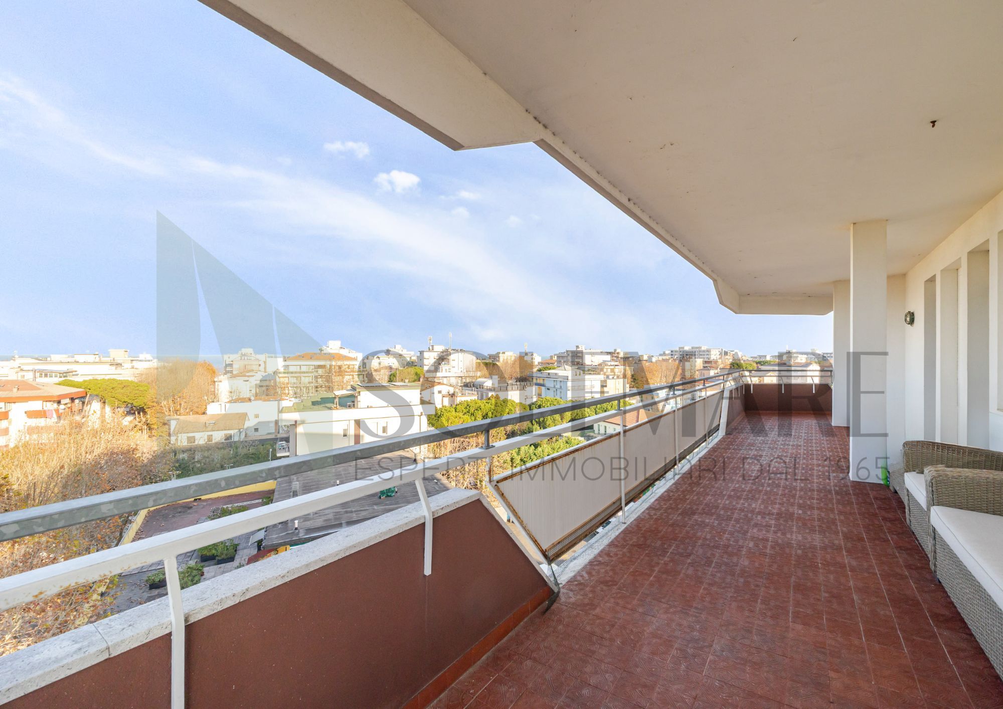 Proponiamo in vendita questo esclusivo immobile al sesto ed ultimo piano di condominio (Con Ascensore), con una vista mare unica. L'appartamento è stato recentemente ristrutturato ed è composto da ingresso su disimpegno, ampio soggiorno, cucina abitabile, bagno con box doccia, camera da letto doppia e camera da letto matrimoniale con bagno privato, il terrazzo di 80 mq è accessibile da ogni stanza dell'abitazione e garantisce una vista mare su tutta la riviera romagnola. A concludere la soluzione, una comoda cantina con lavanderia e due posti auto assegnati dal condominio.