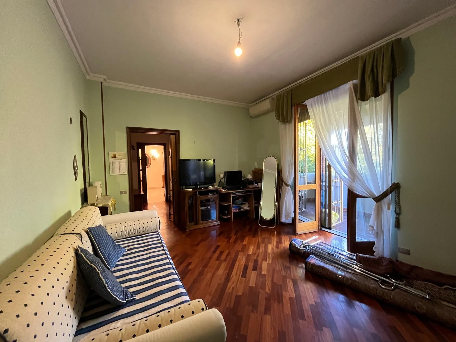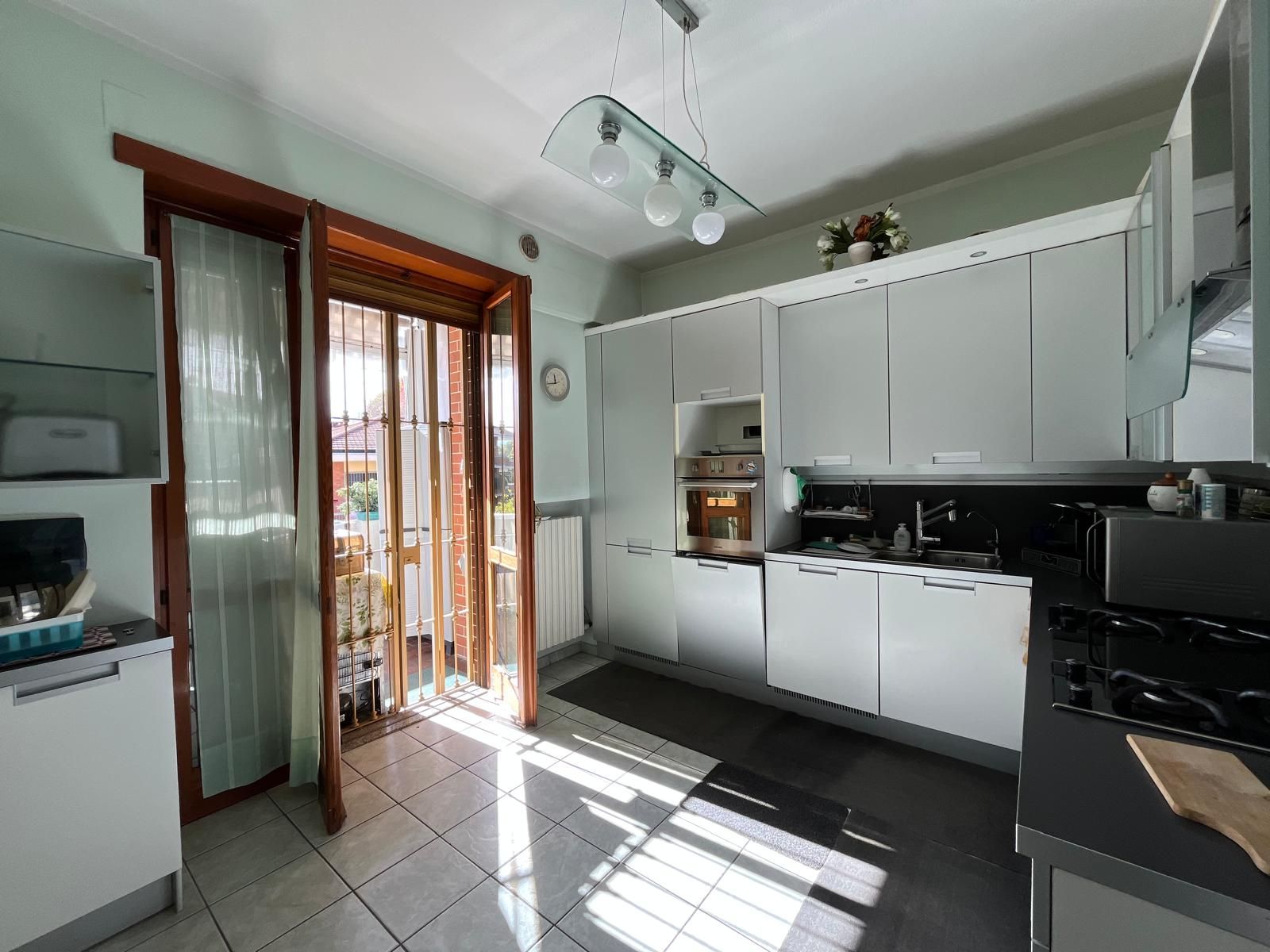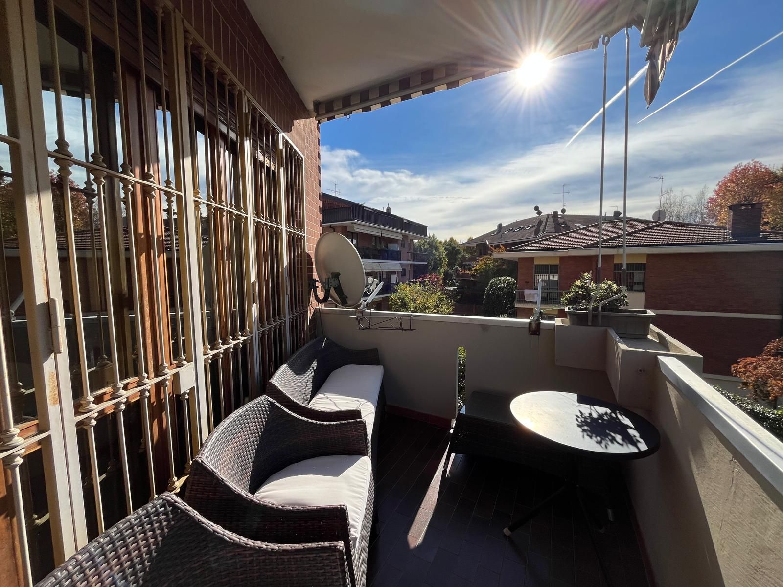 Lo Studio Gran Madre propone in vendita un signorile appartamento, in buono stato, di 190 mq posto al 1° piano, con ascensore, di uno stabile del 1970 di soli 3 piani. L’immobile, che gode di quadrupla esposizione, è immerso nel verde al confine del Parco Fluviale del Po, in prossimità del Club Sportivo Ronchi Verdi e più precisamente in Corso Moncalieri 444. Lo stile degli anni’70 è riassunto in questo immobile. Tutti gli ambienti sono infatti ampi e luminosi e godono della presenza di un affaccio esterno su tutti e 4 i lati dello stabile. La luce naturale è dunque garantita ad ogni ora del giorno per un maggior comfort abitativo. Gli ingressi sono doppi. La zona giorno è costituita da un ingresso su un soggiorno di generose dimensioni dotato di camino funzionante e le porte finestre conducono su un piacevole terrazzo dotato di tende da sole con vista panoramica. La cucina, abitabile, affaccia su balcone con tende veranda (oltre a quelle da sole) che consentono di sfruttare questo spazio durante tutto l’anno come lavanderia. Sullo stesso balcone affaccia un bagno, interamente piastrellato e dotato di box doccia. Un utile ripostiglio completa la composizione della zona giorno. La zona notte è composta da un disimpegno sul quale si affacciano le 3 camere dotate di parquet e affaccio, ognuna, sul proprio balcone. Il secondo bagno è anch’ esso piastrellato, dotato di box doccia e porta finestra su balcone. Una delle camere gode della presenza di una cabina armadio. Completano la proprietà 3 posti auto, 2 coperti in autorimessa comune e 1 scoperto. Doppi ingressi dotati di porte blindate Infissi legno doppio vetro con zanzariere. Inferriate e tende da sole Aria condizionata Riscaldamento autonomo Giardino condominiale Cancello elettrico Il buono stato dell’immobile, il piacevole contesto in cui è inserito e la distribuzione degli spazi che lo rendono funzionale ed armonico, fanno di questo appartamento un’ottima soluzione abitativa. La tranquillità e la privacy sono un valore aggiunto considerando che a poche decine di metri si trova Corso Moncalieri, una delle arterie che collega il Centro con la parte sud della Città e con il Comune di Moncalieri. La zona circostante è ottimamente servita da mezzi pubblici, esercizi commerciali, aree verdi e scuole.